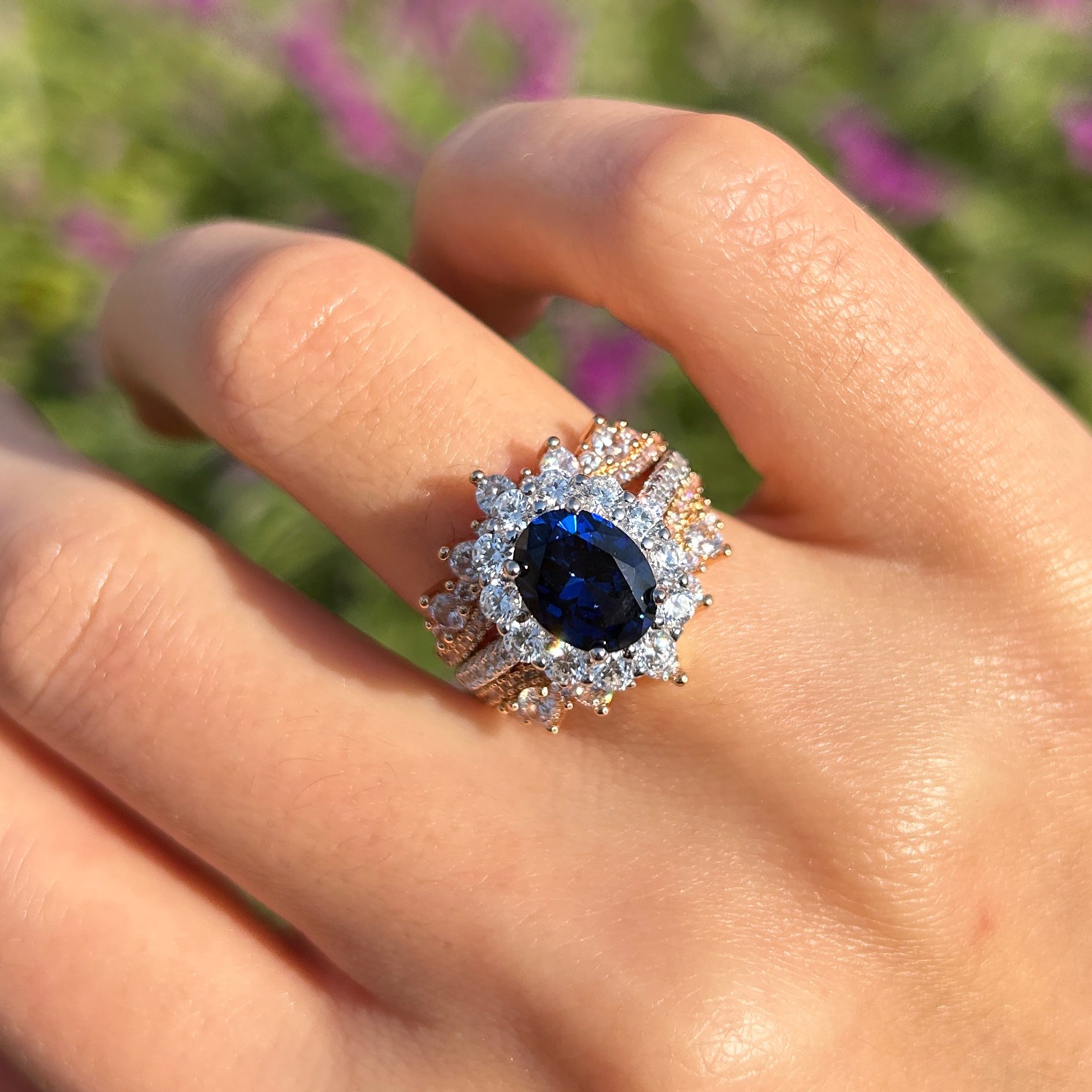 Size 8.0 | Blue Oval Cut Halo 925 Sterling Silver Engagement Ring