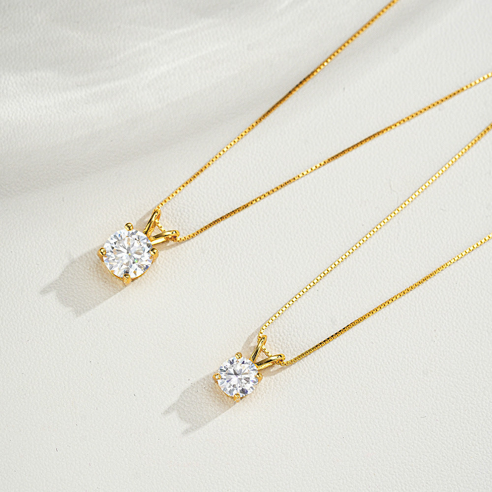 Classic 925 Sterling Silver Four-Prong Pendant Moissanite Necklace
