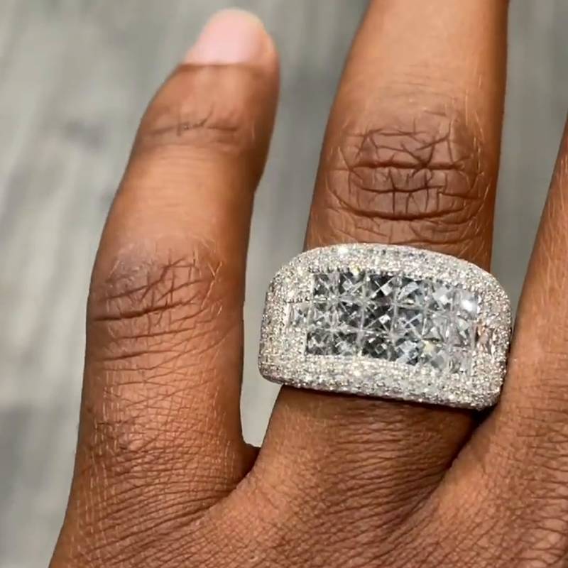Luxury Iced Out Square Baguette and Round Cut Men's Ring