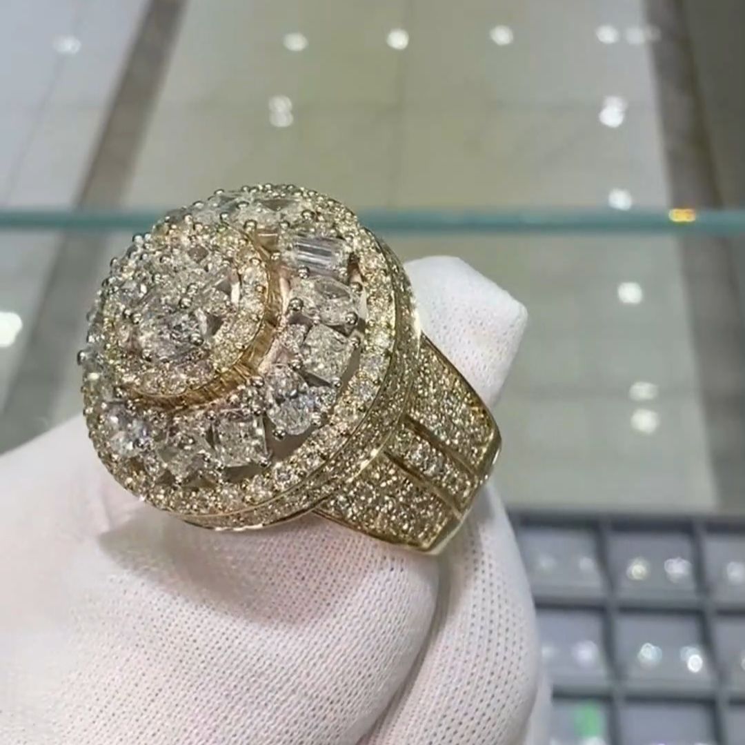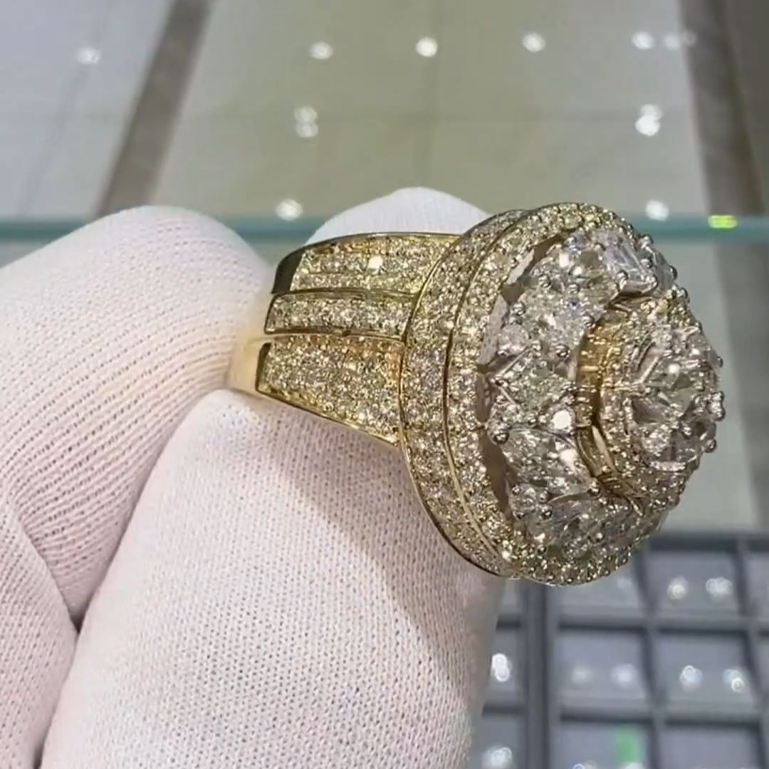 36ctw Oval Cut and Cushion Cut Sterling Silver Plated Yellow Gold Handmade Men's Ring