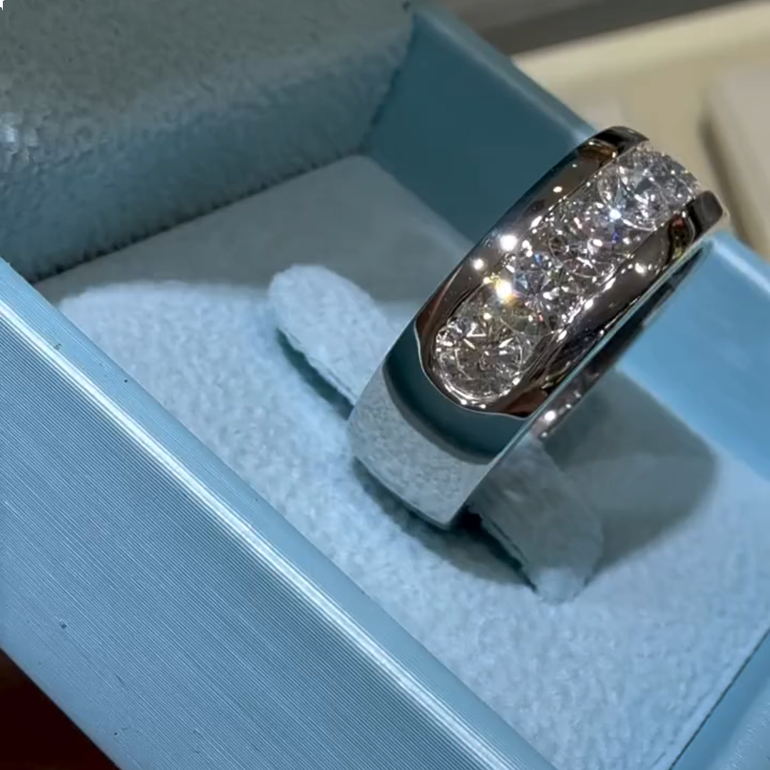 1 Carat D Color Moissanite Round Cut Engagement Ring for Men