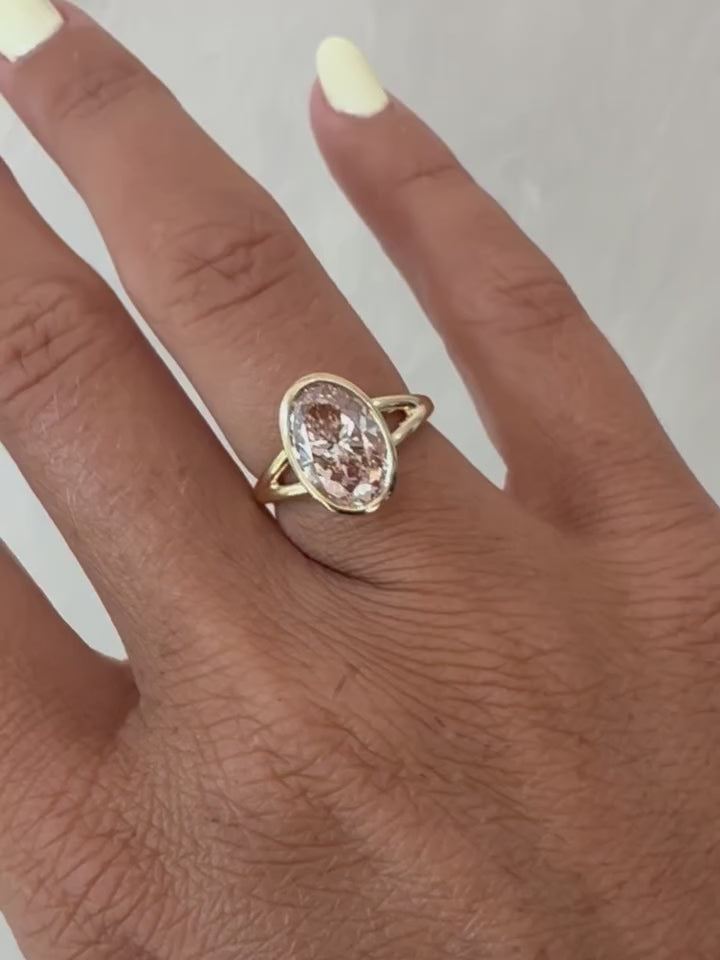 Simple Pink Oval Cut Sterling Silver Engagement Ring