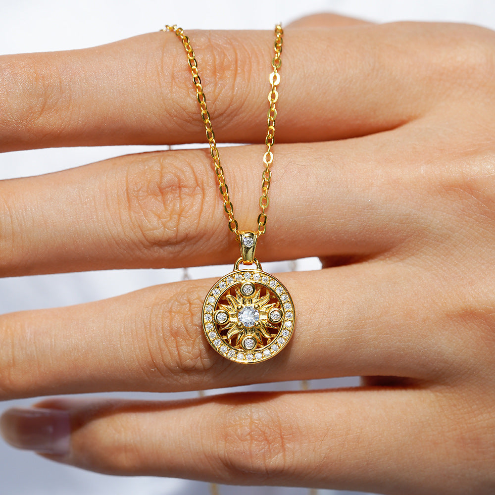 Sunflower Moissanite Eight Treasures Compass Pendant Necklace