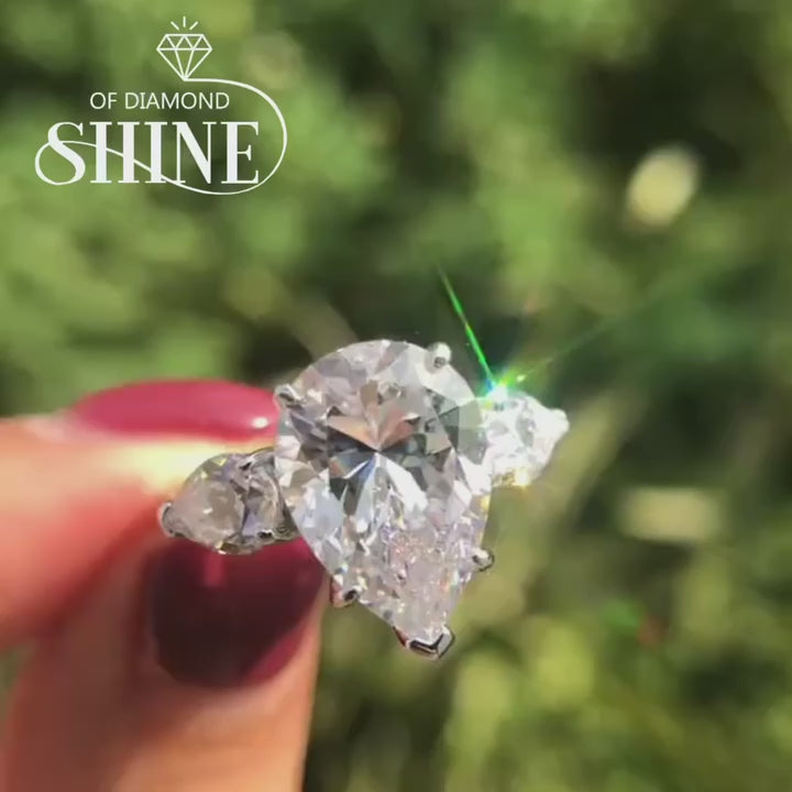 Classic Pear Cut Three Stones Sterling Silver Engagement Ring