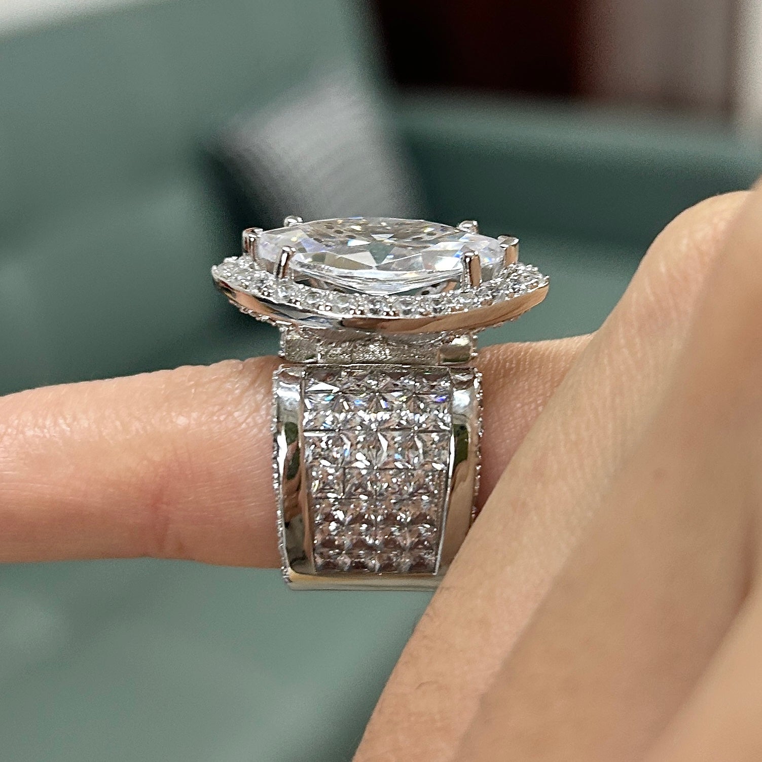 Size 4.5 | 7CT Halo Marquise Cut Wide Band Engagement Ring in Sterling Silver